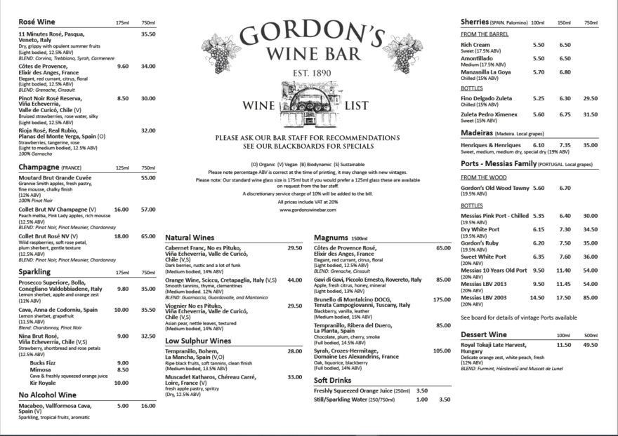Copyright Gordon's Wine Bar 2025 - All rights reserved.